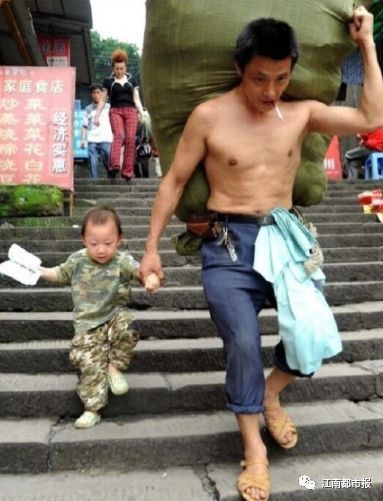 肩上扛著全家,嘴上叼著自己,手上牽著未來