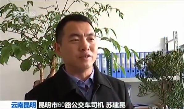 監控畫面顯示,1月8日下午三點左右,蘇建昆駕駛昆明市60路公交車到達一站臺后,在等候乘客上下車時,發現了一名杵著拐杖的老人上車十分費勁。蘇師傅停好車后,趕緊解開安全帶下車去幫忙,將老人抱上了車。