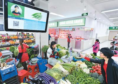 2017年11月29日,在安徽合肥瑤海區勝利智能農貿市場,市民在掃碼支付。 張大崗攝(新華社發)