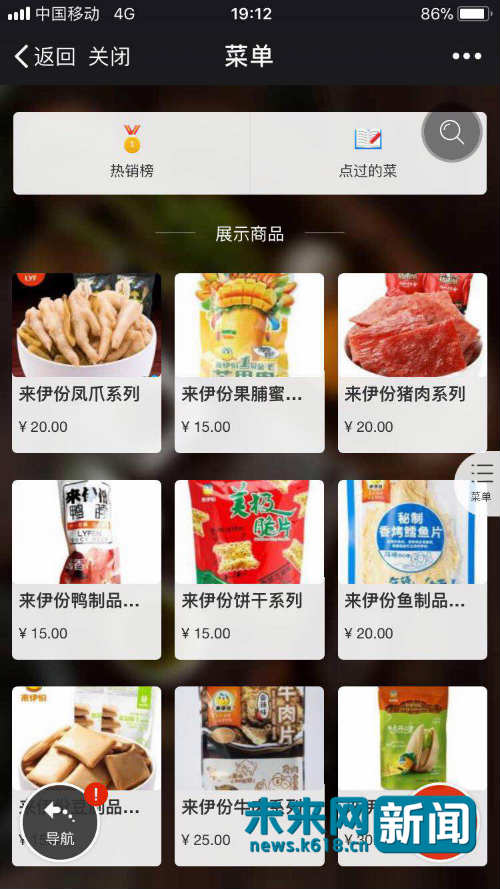 圖為高鐵列車上的微信點餐服務界面截圖。