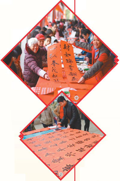 圖①:書法家為江西贛州群眾送去春聯(lián)。 陳地長(zhǎng)攝