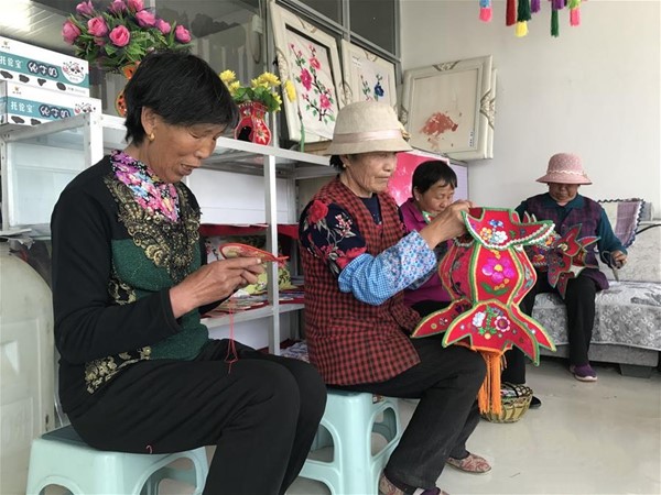 在青海省海西蒙古族藏族自治州烏蘭縣銅普鎮都蘭河村,村民在制作手工藝品(5月15日攝)。