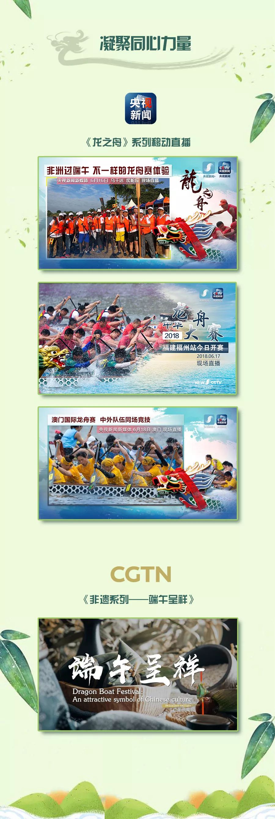 今年端午佳節,中央廣播電視總臺不斷創新,在“賽龍舟、包粽子”的節日氣氛中為大家帶來視聽新享受,體味濃濃端午情。