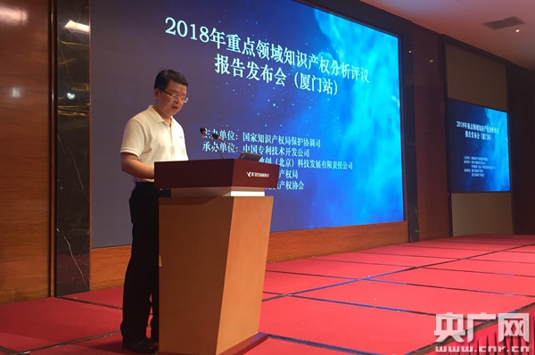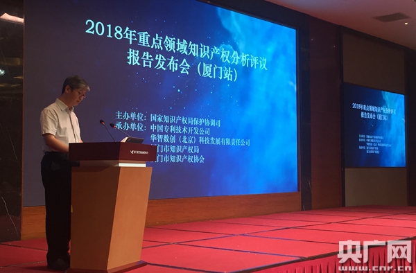 央廣網(wǎng)廈門8月2日消息(記者呂貝娜)知識(shí)產(chǎn)權(quán)是創(chuàng)新競(jìng)爭(zhēng)力。開展知識(shí)產(chǎn)權(quán)分析評(píng)議,既是保障產(chǎn)業(yè)安全、服務(wù)產(chǎn)業(yè)發(fā)展的有效方式,也是支撐創(chuàng)新驅(qū)動(dòng)、推動(dòng)強(qiáng)國(guó)建設(shè)的具體舉措之一。8月2日,2018年重點(diǎn)領(lǐng)域知識(shí)產(chǎn)權(quán)分析評(píng)議報(bào)告發(fā)布會(huì)首站在廈門舉行,圍繞信息技術(shù)領(lǐng)域發(fā)布相關(guān)產(chǎn)業(yè)的知識(shí)產(chǎn)權(quán)分析評(píng)議報(bào)告。本次發(fā)布會(huì)由國(guó)家知識(shí)產(chǎn)權(quán)局保護(hù)協(xié)調(diào)司主辦,中國(guó)專利技術(shù)開發(fā)公司、華智數(shù)創(chuàng)(北京)科技發(fā)展有限責(zé)任公司承辦,廈門知識(shí)產(chǎn)權(quán)局、廈門知識(shí)產(chǎn)權(quán)協(xié)會(huì)協(xié)辦,來自國(guó)家知識(shí)產(chǎn)權(quán)局及相關(guān)單位、廈門市知識(shí)產(chǎn)權(quán)局、各企事業(yè)單位、高校、科研院所和知識(shí)產(chǎn)權(quán)服務(wù)機(jī)構(gòu)的代表200余人參加了會(huì)議。
