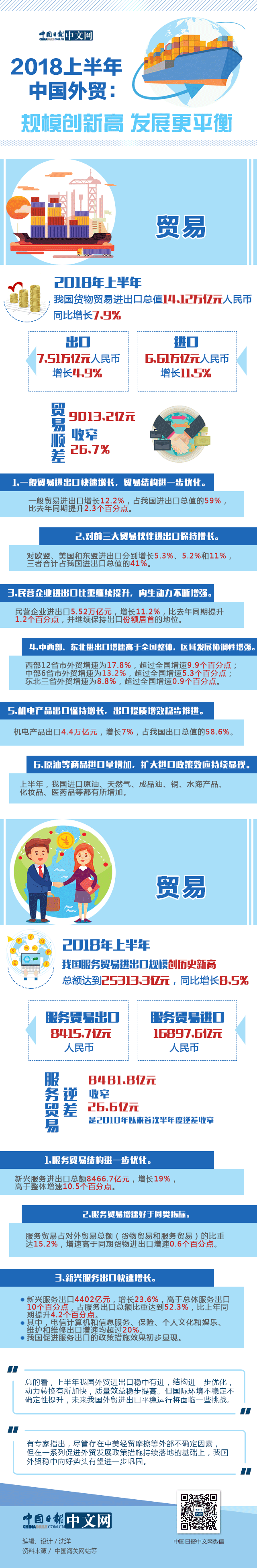 圖解|2018上半年中國外貿(mào):規(guī)模創(chuàng)新高 發(fā)展更平衡