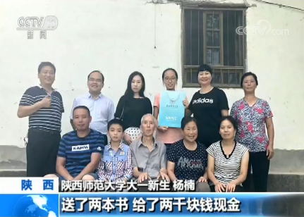 陜西師范大學地理科學與旅游學院大一新生 楊楠:送了兩本書,給了兩千塊錢現(xiàn)金,感覺很溫暖比較感動。學費住宿費全免,每個月還會收到600塊的生活費補助,生活上面沒有什么壓力,現(xiàn)在就是好好讀書。
