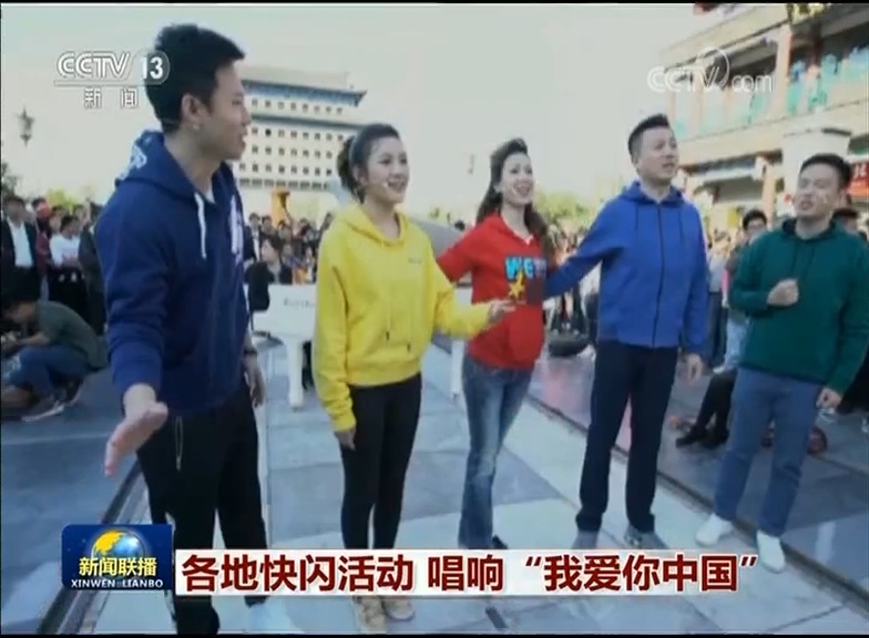 央視網消息(新聞聯播):國慶長假期間,各地在商場、工地、旅游景點等多個地方推出了“我愛你中國”系列快閃活動。意想不到的場景,充滿深情的歌聲,點燃起人們的愛國熱情,歡樂祥和、喜慶熱烈的國慶氛圍撲面而來。