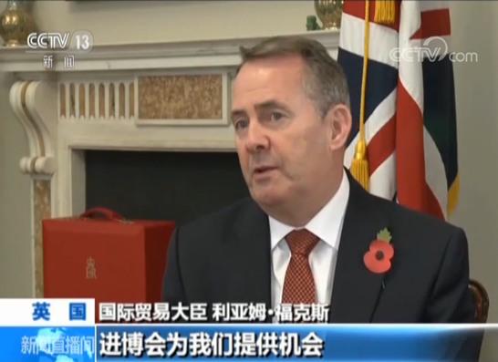 央視網(wǎng)消息:作為首屆中國國際進(jìn)口博覽會的主賓國之一,英國對進(jìn)博會高度重視,將派出包括王室成員、政府官員和企業(yè)領(lǐng)袖組成的高級別代表團(tuán)。英國國際貿(mào)易大臣福克斯接受央視記者專訪時表示,進(jìn)博會將為中英關(guān)系“黃金時代”帶來新的機(jī)遇。
