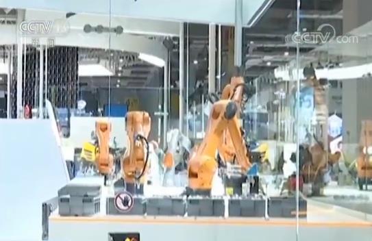 記者:“在現(xiàn)場,這家來自德國的企業(yè)搭建了一個小型的智能工廠。在這個裝配臺上,機械手臂將聯(lián)合作業(yè),向觀眾展示機器人生產(chǎn)的靈活、高效和精密。”