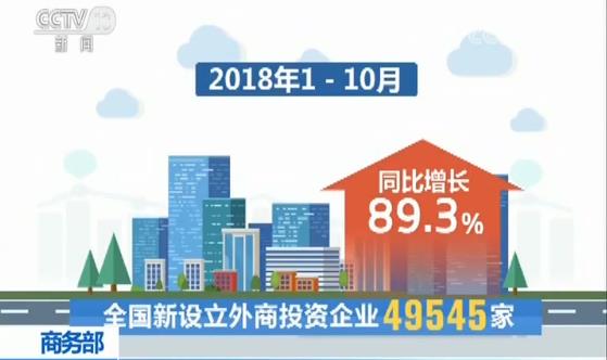 數(shù)據(jù)顯示,1-10月,全國(guó)新設(shè)立外商投資企業(yè)49545家,同比增長(zhǎng)89.3%;實(shí)際使用外資7011.6億元,同比增長(zhǎng)3.3%。其中,高技術(shù)制造業(yè)實(shí)際使用外資737.8億元,同比増長(zhǎng)30.6%。