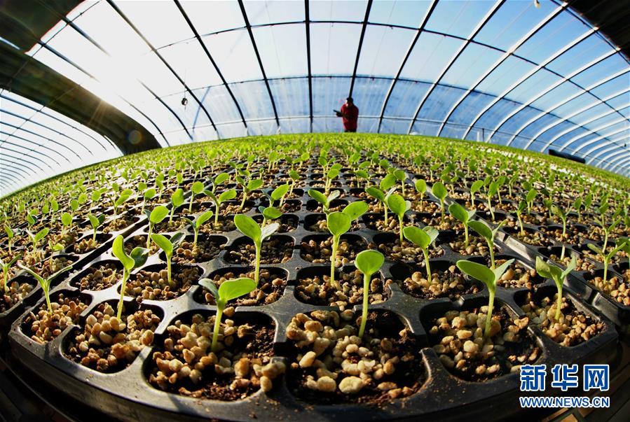 河北省樂亭縣樂亭鎮一家現代農業園區的工人在育苗大棚內工作(12月12日攝)。新華社記者 楊世堯 攝