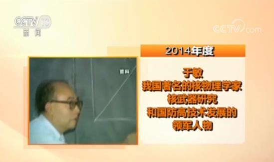 2014年度——授予我國著名的核物理學家、核武器研究和國防高技術發展的領軍人物于敏。