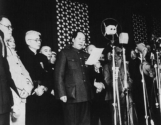 下午3時,首都30萬軍民齊聚天安門廣場,舉行開國大典。毛澤東宣讀了《中華人民共和國中央人民政府公告》,升起了莊嚴的國旗。朱德宣讀了中國人民解放軍總部命令,命令人民解放車迅速肅清國民黨一切殘余武裝,解放一切尚未解放的國土,同時肅清土匪和其他一切反革命匪徒,鎮(zhèn)壓他們的一切反抗和搗亂行為。接著舉行了閱兵式。