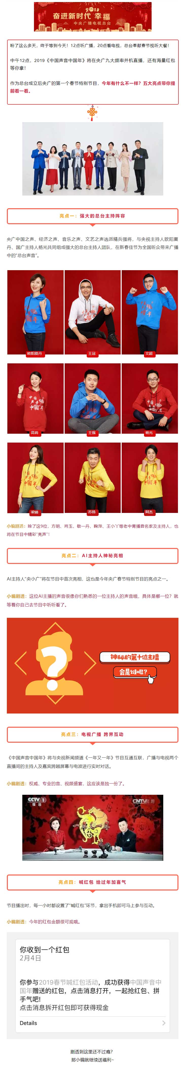 中午12點(diǎn),2019《中國聲音中國年》將在央廣九大頻率并機(jī)直播,還有海量紅包等你拿!