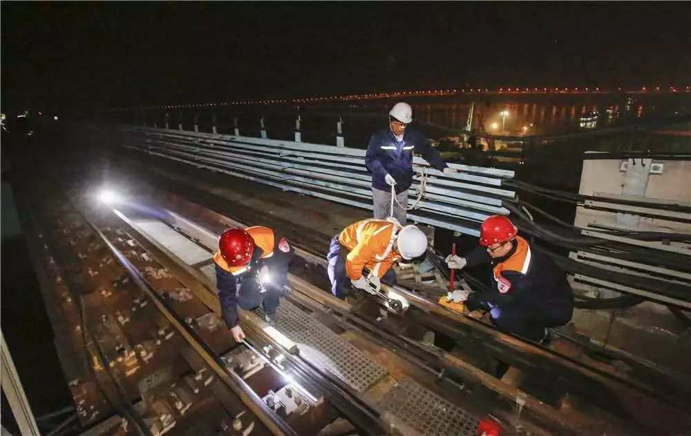 S3寧和城際,由南京地鐵成立的工務線橋工班工作人員在維護鋼軌、扣件等設施設備。一絲不茍做好每一項工作,為的是不出現一絲一毫的意外,看到每一位漂泊在外的游子能順利歸家。
