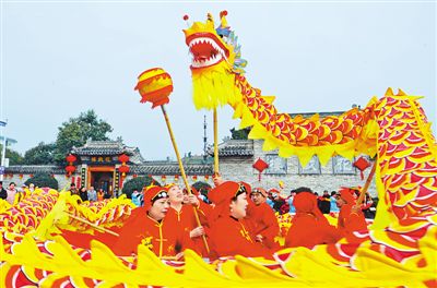 2月4日,在安徽省亳州市花戲樓景區,民間藝人在進行民俗表演。張延林攝(影像中國)