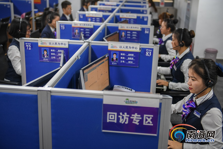 2019年2月8日,海口市民游客中心,12345政府服務熱線的工作人員通過電話語音、網上工單、微信等受理市民訴求。海報全媒體中心記者 袁琛 攝