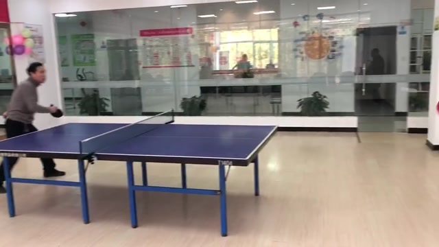 老人在一樓活動室打乒乓球