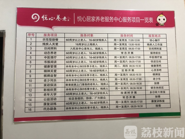 中心的養老服務項目表