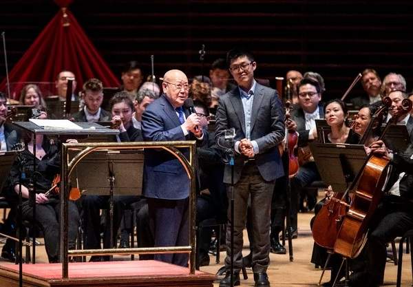 最后一個音符落下后,在龔天鵬的邀請下,79歲的尚長榮出現(xiàn)在舞臺上。他健步如飛,聲如洪鐘,帶著戲曲腔對所有觀眾說,“音樂是最美好的聲音,音樂給人類帶來福祉,音樂是超越國界的存在。希望兩個樂團(tuán)的合作源遠(yuǎn)流長,兩國人民的文化藝術(shù)交流代代相傳。”