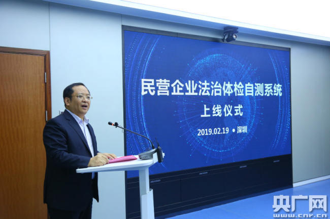 央廣網(wǎng)深圳2月19日消息(記者黃倩 通訊員司新宣)深圳市司法局今天(19日)舉行“民營企業(yè)法治體檢自測系統(tǒng)”上線儀式,在全國率先推出普惠式、可選擇、便捷化的“民營企業(yè)法治體檢自測系統(tǒng)”。這意味著,即日起民營企業(yè)有了自己的法治“家庭醫(yī)生”,通過該系統(tǒng)可智能檢測涉訴風(fēng)險。
