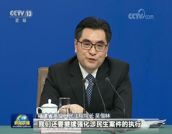 農民工討薪等涉民生執行效果如何,福建省高級人民法院院長吳偕林表示,民生就是民心,我們還要繼續強化涉民生案件的執行,讓更多的真金白銀落入人民群眾的口袋。