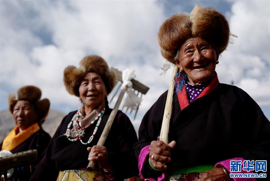 3月16日,山南市乃東區克松社區居民在開耕儀式上。新華社記者 普布扎西 攝