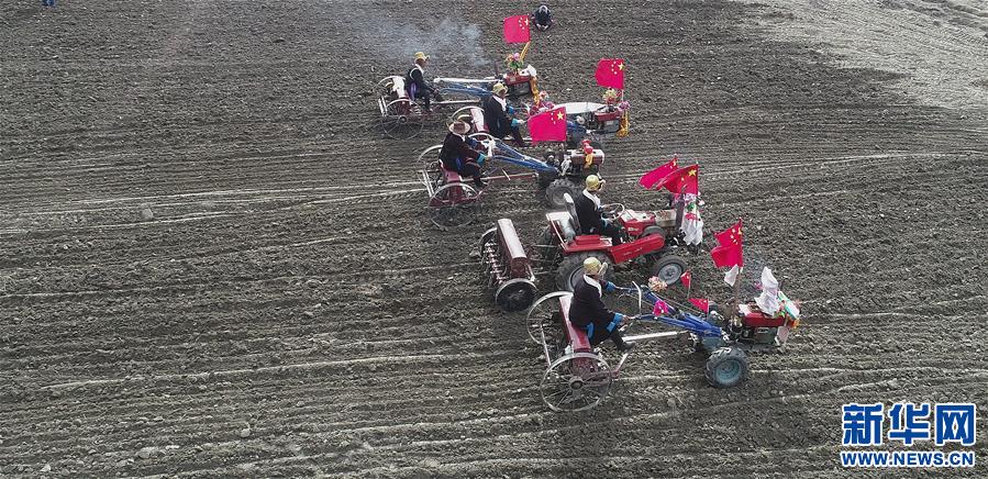 3月16日無人機拍攝的山南市乃東區克松社區開耕儀式現場。新華社記者 晉美多吉 攝