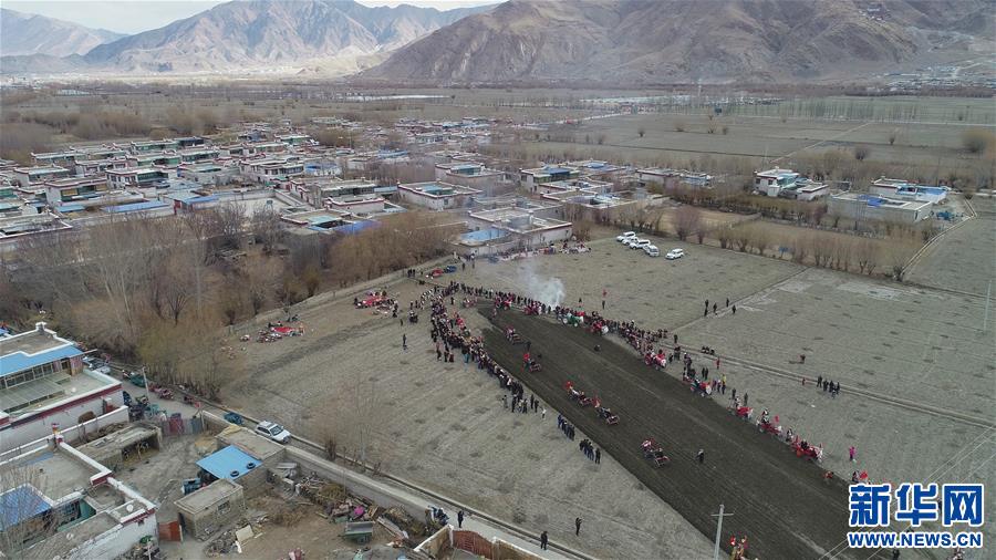 3月16日,山南市乃東區克松社區居民在開耕儀式上。新華社記者 李鑫 攝