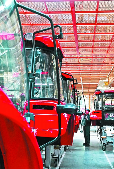 “一帶一路”倡議提出以來,中國一拖集團(tuán)有限公司在深耕國內(nèi)市場的同時,努力拓展海外市場,產(chǎn)品遠(yuǎn)銷全球100多個國家和地區(qū)。圖為工人在工廠內(nèi)檢查拖拉機(jī)外殼。新華社發(fā)