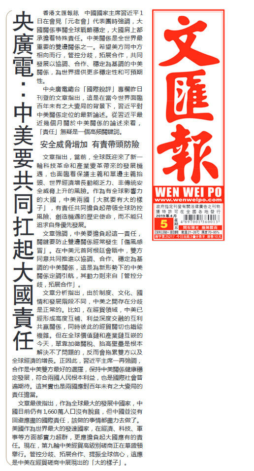 香港《文匯報》4月5日刊發