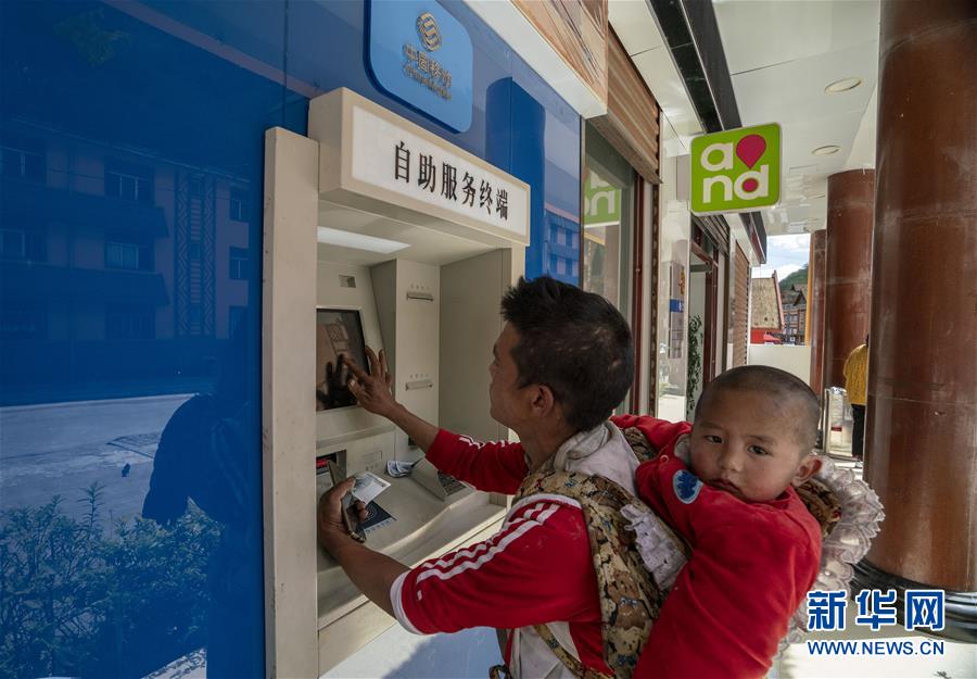 4月13日,云南省貢山縣獨龍江鄉村民在自助終端上辦理電信業務。新華社記者江文耀攝