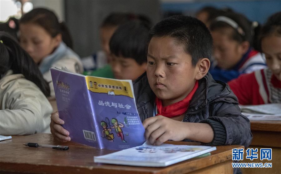 4月13日,云南省貢山縣獨龍江鄉中心小學的孩子們在上課。 新華社記者江文耀攝