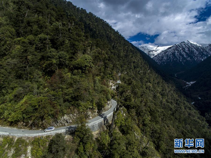 這是4月13日無人機拍攝的貢山縣通往獨龍江鄉的公路。 新華社記者江文耀攝