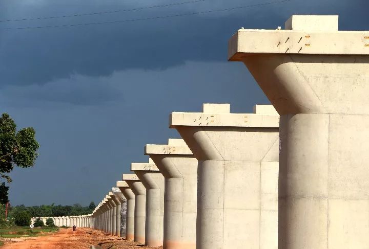 ↑2018年6月14日的老撾萬(wàn)象楠科內(nèi)河特大橋橋墩。墩身澆筑完成標(biāo)志著中老鐵路全線最長(zhǎng)橋梁主體工程順利完工。 新華社發(fā)