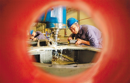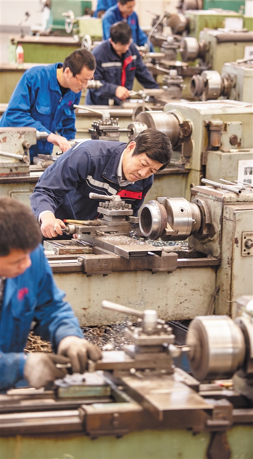 5月2日,位于山東省日照經(jīng)濟技術(shù)開發(fā)區(qū)的山東雙港活塞有限公司工藝裝備車間,全國五一勞動獎?wù)芦@得者李為剛(中)帶領(lǐng)“青年突擊隊”開展技術(shù)攻關(guān)。作為一線工人的李為剛曾先后獲得國家實用新型專利7項,國家發(fā)明專利2項。 田 磊攝(中經(jīng)視覺)
