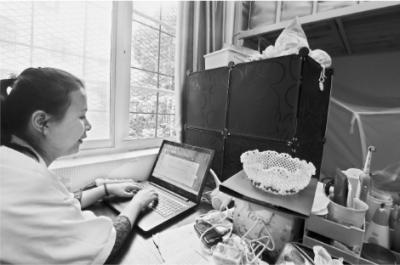 7日下午,黃鶯在使用筆記本電腦長(zhǎng)江日?qǐng)?bào)記者李子云 攝