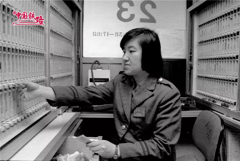 上圖:上世紀80年代初,天津站售票員常玉萍賣起硬板票來就像是中醫(yī)“抓藥”。
