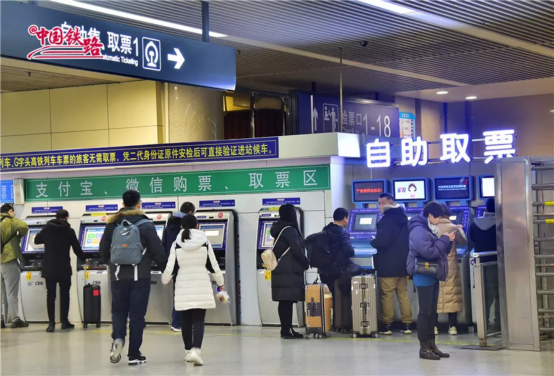 下圖:2019年,天津站自助購票、取票區(qū)。