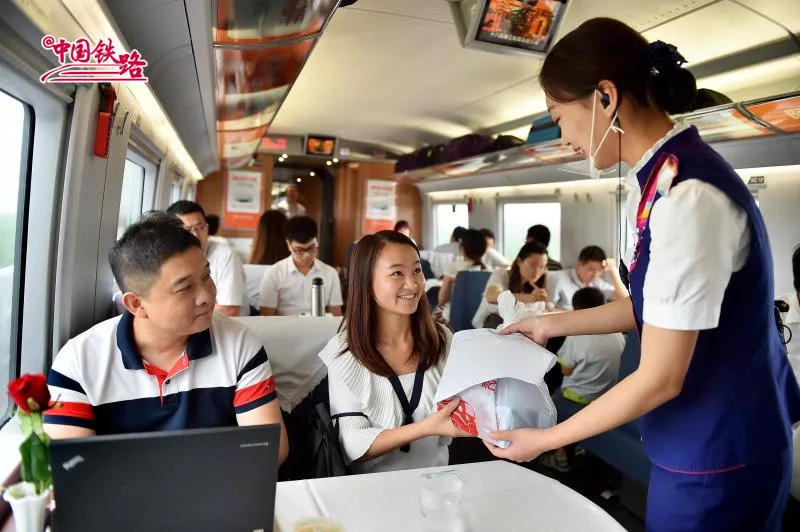 下圖:2018年,旅客在京滬高鐵列車上收到網(wǎng)絡訂餐。