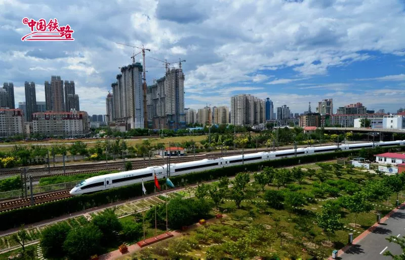 下圖:2015年,和諧號行駛在京津城際鐵路線上,這里正是當年的新官迅鐵路道口。