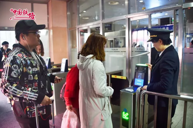 下圖:2019年,旅客通過人臉識別系統(tǒng)進站乘車。