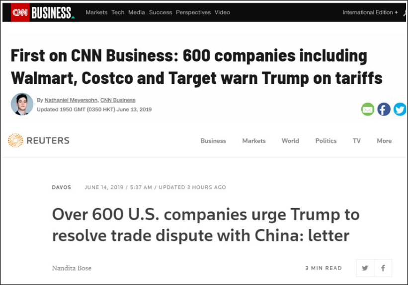 根據路透社和CNN的報道,這600多家企業在寫給特朗普的一份信中強調,特朗普揮舞的關稅大棒正在損害美國企業和消費者的利益,將令美國消費者承受更高的物價。