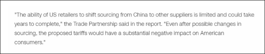 對此,美國CNN指出這數百家企業所描述的情況和引用的數據,都與此前不斷在“淡化”貿易沖突對美國國內影響的美國官方言論相左。CNN還在報道中引用專家觀點說,雖然有人宣稱這些美國企業大可以把生產線和供應鏈搬出中國,但實際上這不僅很難實現,而且即便有可能實現也會給美國消費者帶來巨大的負面影響。