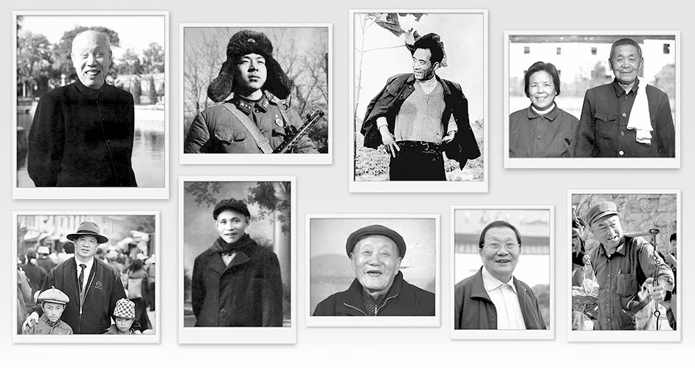 圖①-⑨人物依次為董必武、雷鋒、焦裕祿、甘祖昌與夫人龔全珍、孔繁森、谷文昌、張富清、吳仁寶、吳金印。