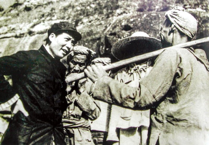 圖為毛澤東在延安楊家嶺和農民談話,詢問他們的生產和生活情況。 新華社發