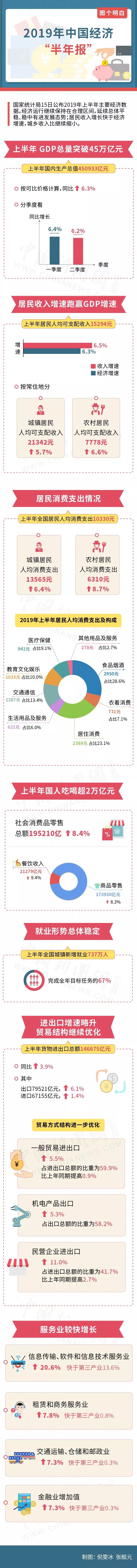 初步核算,上半年國內生產總值450933億元,按可比價格計算,同比增長6.3%。