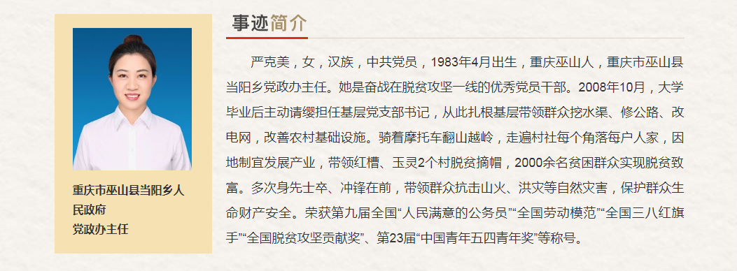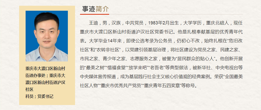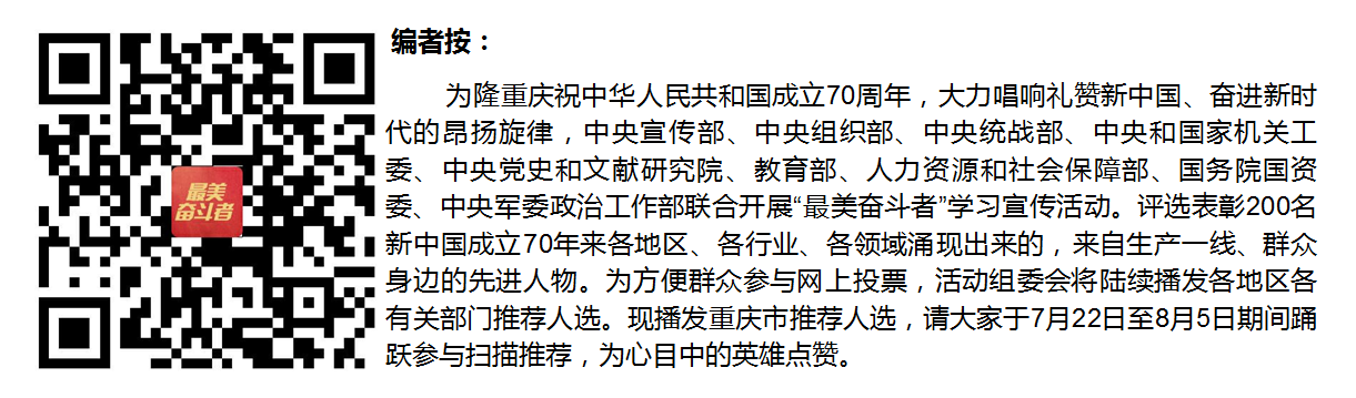 重慶市“最美奮斗者”推薦人選。