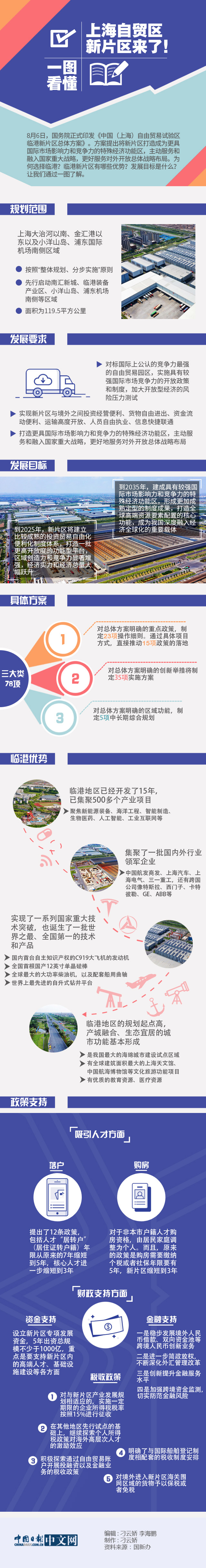 中國日報網8月7日電(刁云嬌)8月6日,國務院正式印發《中國(上海)自由貿易試驗區臨港新片區總體方案》。方案提出將新片區打造成為更具國際市場影響力和競爭力的特殊經濟功能區,主動服務和融入國家重大戰略,更好服務對外開放總體戰略布局。為何選擇臨港?臨港新片區有哪些優勢?發展目標是什么?讓我們通過下面一圖了解。