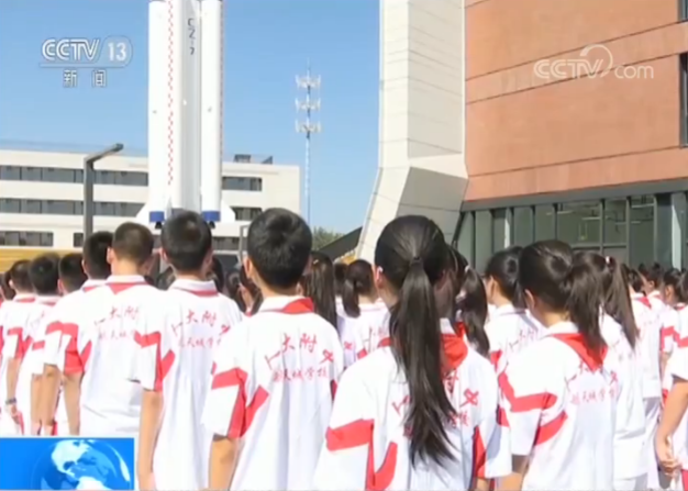 在這個新學期,人大附中航天城學校搬入新校舍,迎來了第一批初中部的學生。師生們還收到了一份特別的開學禮物——長征七號運載火箭模型。學校專門請來航天系統專家,在這個特別的禮物旁,為新入學的初中生上了“開學第一課”,播撒愛國奮斗的種子。